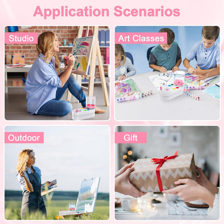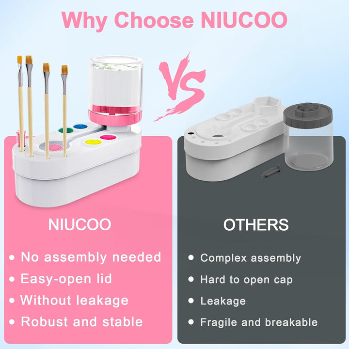 Enjoy a hassle-free experience right out of the box—there's no complicated assembly required. Made from high-quality ABS material, this cleaner is durable and safe. It works well with a variety of paints, including acrylic, watercolor, egg tempera, gouache, and other water-based paints, making it an essential tool in any artist's kit