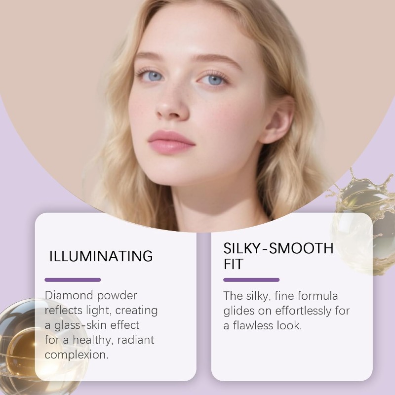 The fine, silky formula melts into the skin for a flawless, second-skin finish. Light-reflecting particles catch and diffuse light, helping your complexion look fresh, radiant, and healthy. It layers beautifully over foundation or bare skin without emphasizing texture.