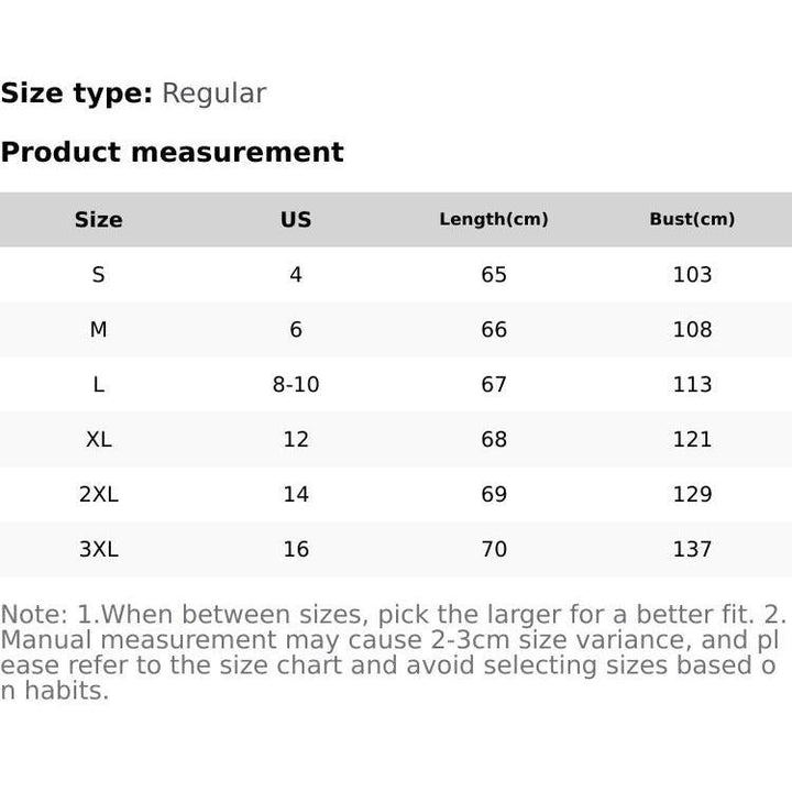 Note — fabric has little stretch. If you're in between sizes, sizing up will give you a looser, more elegant drape.