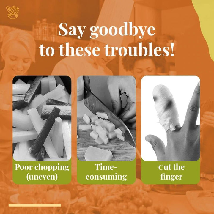 - Quickly Prepare VegetablesΒ No need to cut frequently with a knife, just gently press the chopper, and vegetables can be diced or sliced. The diced vegetables are neat and square, which is more beautiful than hand-cutting.