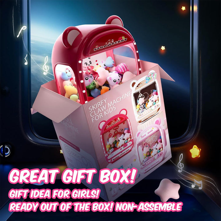 No assembly required for the kids claw machines - this candy claw machines combines classic arcade fun with vibrant colors and charming unicorns squishy toys-toddler easter basket stuffers, plush dolls, and mini tumbler toys dolls, immediately capturing the hearts of kid who love magical things. Lively carnival music and a 60-second time limit create a lively atmosphere and increase the game's challenge.Great girl toys!