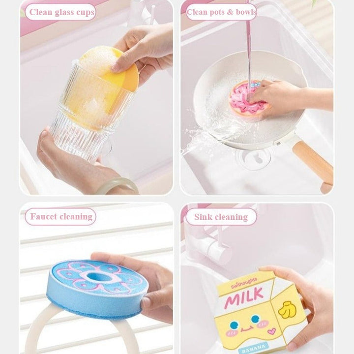 Choose from donut, bread bun, milk carton, or cupcake themes. Each sponge brightens your kitchen sink and turns everyday cleaning into a cheerful routine.