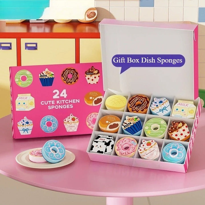 Available in sets of 6, 12, or 24 assorted sponges. Packed in an attractive gift box, making it a thoughtful choice for housewarmings, dorm essentials, or family sharing.