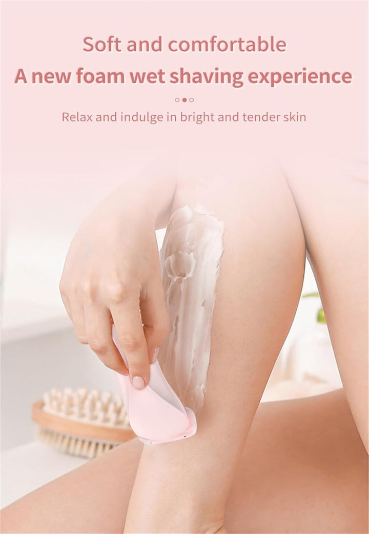 This razor features a three-in-one blade design: straight blades for larger areas like legs and arms, curved blades for underarms, and a floating wide mesh for a closer shave in delicate areas.