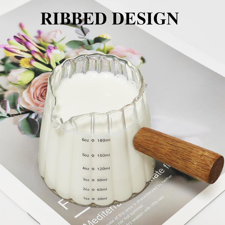 - HIGH BOROSILICATE HEAT-RESISTAN: Milk Frothing Pitcher can be microwaved. Can be used for hot coffee and hot milk. Crystal clear.