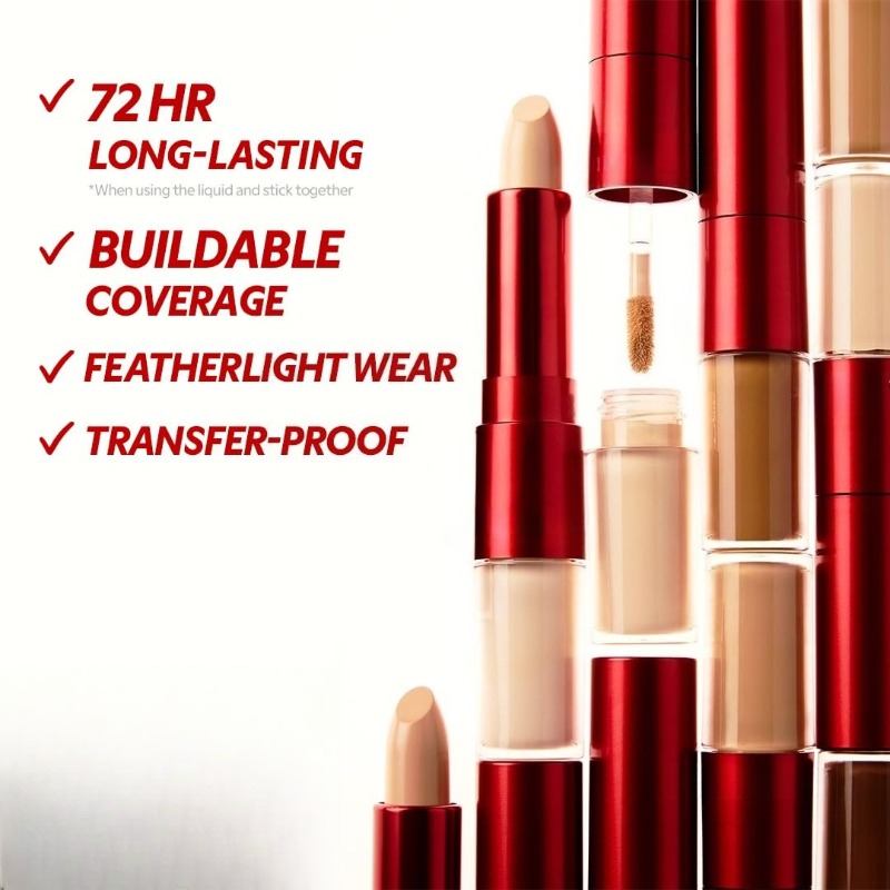 Enjoy the precision of a 2-in-1 design: the liquid tip offers creamy, buildable coverage for under-eyes and redness, while the balm stick blurs pores and texture for a smooth, soft-focus finish. Use them separately or layer together for custom coverage—perfect for spot concealing, contouring, and highlighting.