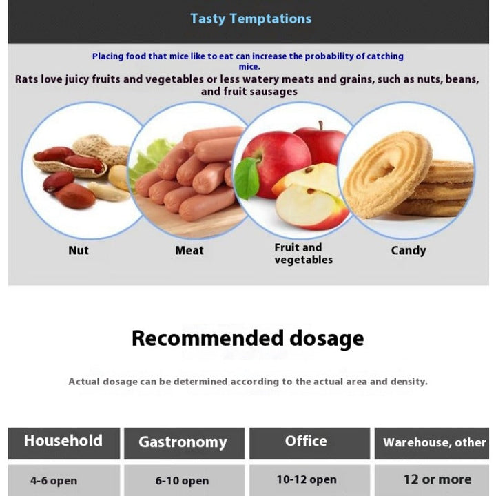 Boost trap success with a dab of peanut butter, dried fruit, or sausage in the center. Setup is simple: open the sheet, add bait, and position in high-traffic areas.