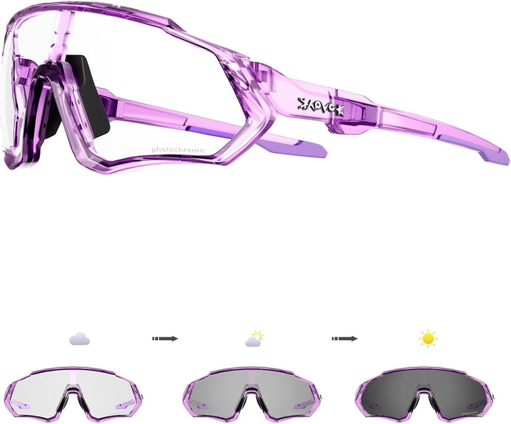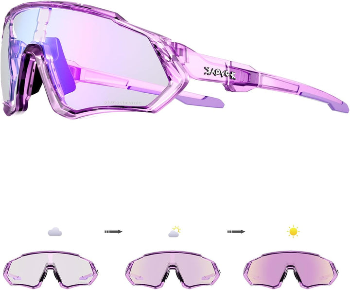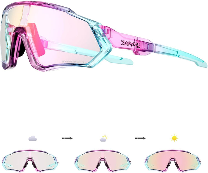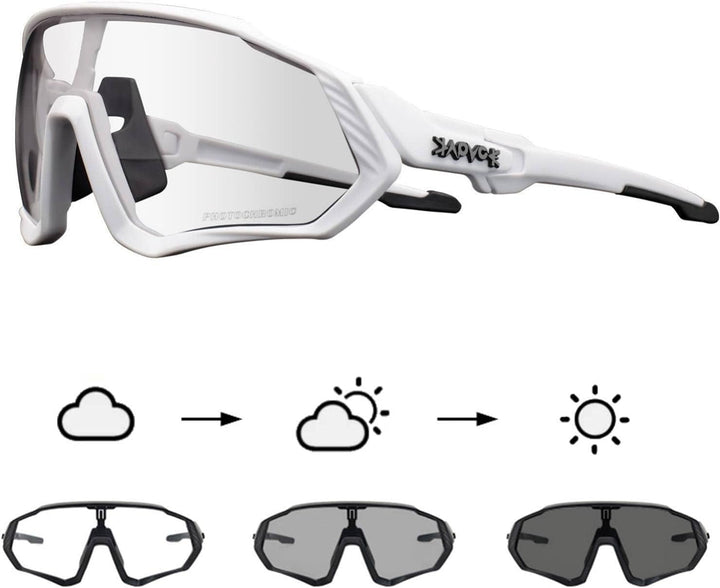 【Photochromic Glasses】 Lenses will change from clear to dark gray in response to the intensity of the ultraviolet, and the visual light transmission of the photochromic lens is from 85% to 15%. Effectively maintain a suitable brightness to protect your eyes in strong sunshine. Attention!!! The darkness of lens color depends on UV intensity!