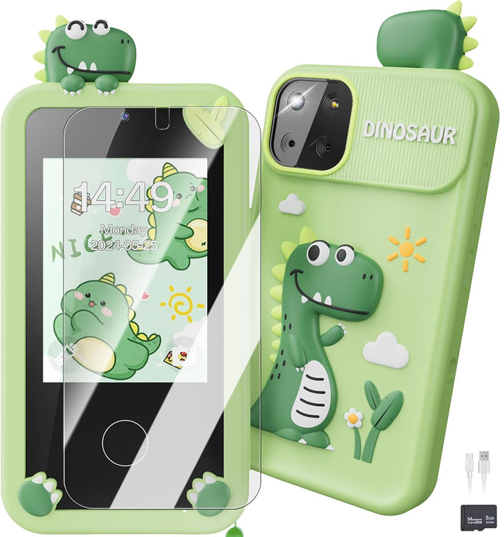 - [Kids Smart Realistic Cell Phone Toy] -Smart phone toy has a HD touch screen that allows kids to experience real smartphone fun. There is no SIM card (no calling or texting), but the entertainment is endless.