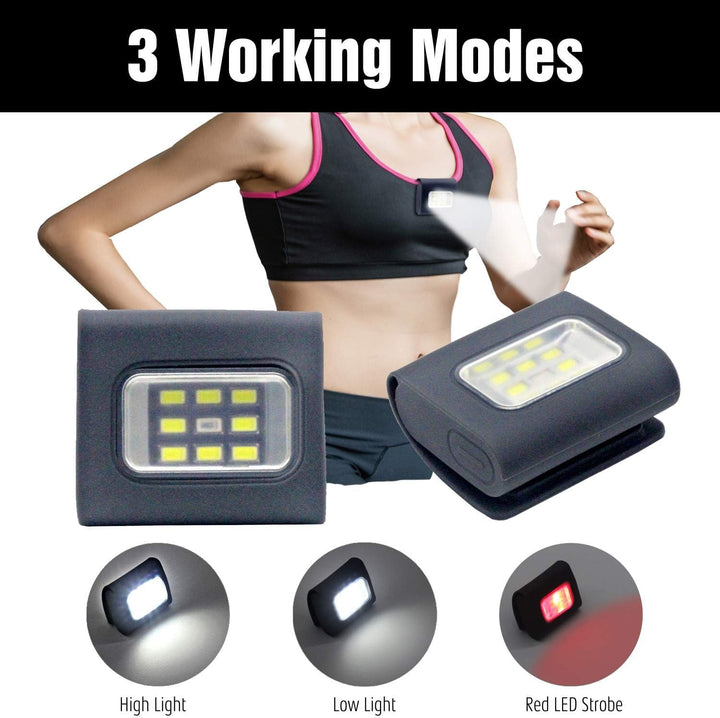 【Super-Bright & Ultra Compact】The clip on running light uses class-leading LED chips that has the maximum brightness of 200 lumens. It is powerful enough to light your path, at same time, ensuring that others will see you hundreds of meters away. Use Red Strobe Mode in case of emergency. With compact dimensions of 2.1*1.7 inches and a weight of 1.7 oz, we can either put it into your pocket or clip on our jacket, hat and bag.