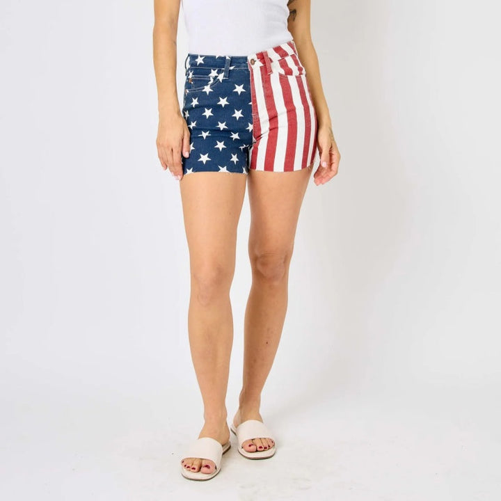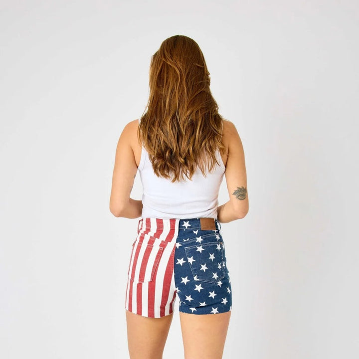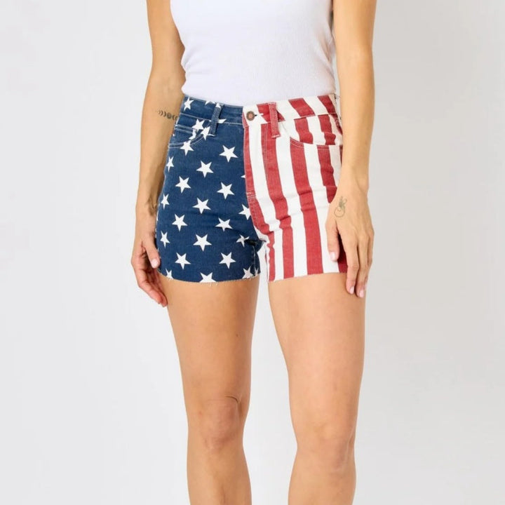 Patriotic High-Rise Stretch Denim Shorts