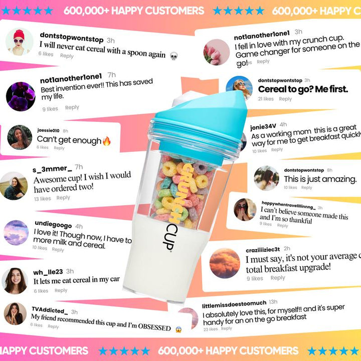 This innovative cereal container is designed to keep your cereal crunchy and your milk fresh, even on-the-go. Simply add your cereal to the inner cup, pour milk into the outer cup, screw on the lid, and you're all set to enjoy a perfectly crunchy breakfast anytime, anywhere.