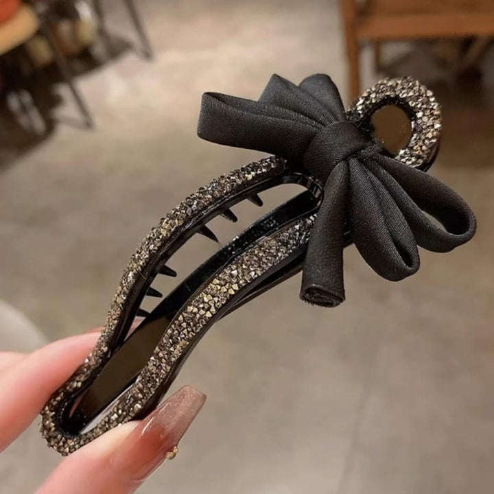 Radiant Bow Black Rhinestone Duckbill Clip