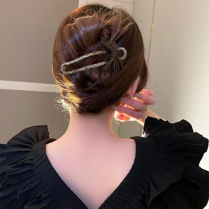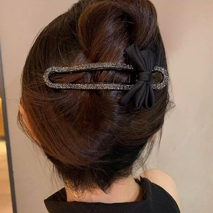 Black Rhinestone Bow Duckbill Hair Clip