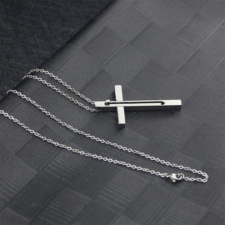 The stainless steel toothpick necklace features a stylish cross pendant with clean lines, offering a modern and minimalist aesthetic perfect for everyday wear.