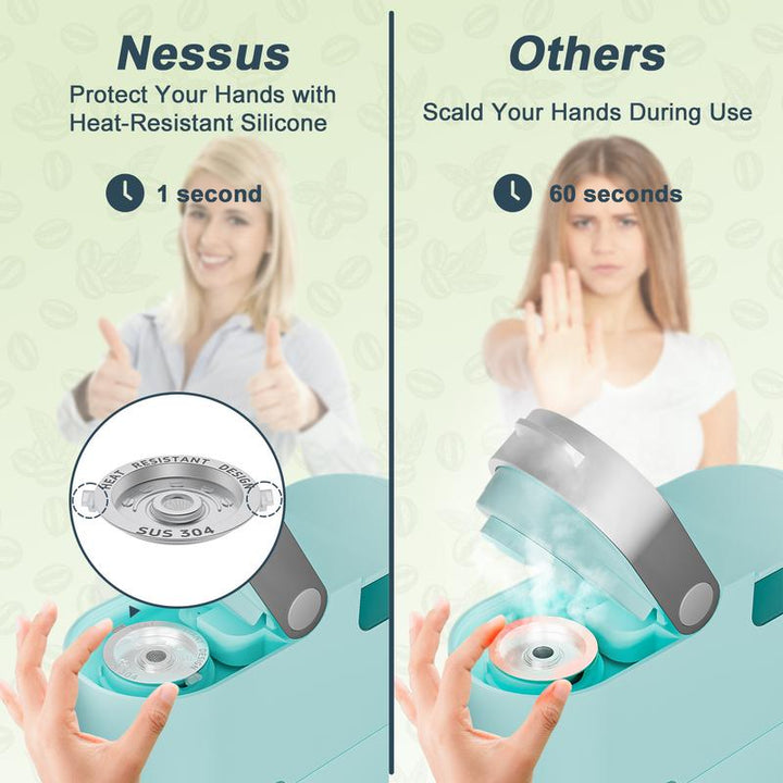 Cool-touch silicone tabs let you lift the pod right after brewing—no waiting, no burns. The recessed rim still locks airtight for zero leaks.