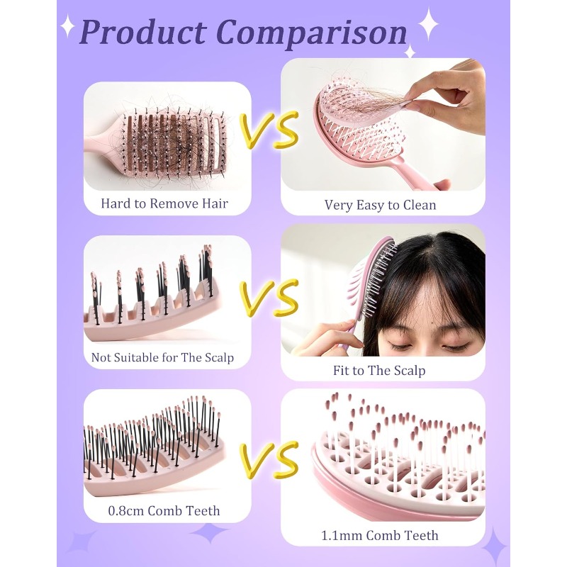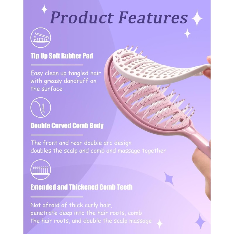 Flexible bristles glide smoothly through wet or dry hair, gently detangling knots without pulling or snagging. This helps reduce split ends, breakage, and hair loss, making daily brushing comfortable and stress-free.