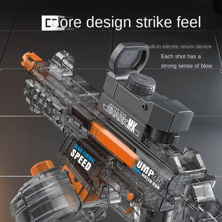 Equipped with a powerful motor, the UMP45 water gun ensures rapid firing speed, making it perfect for intense water battles.