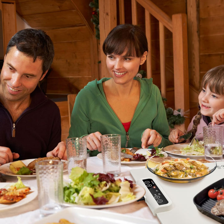 Full-Surface Fast Heating & Energy-Efficient : Our Heating Mat boasts a larger heating area with a meticulously arranged extensive heating wire, ensuring even and rapid warming. As soon as you select a temperature, the mat can warm up in as fast as 10 seconds. You can arrange your tableware freely as your dishes warm up effortlessly.