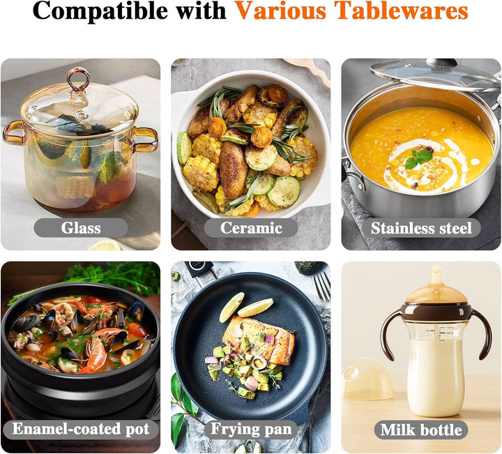 Compatible with Various Tablewares & Versatile Usage Scenarios : Glass, stainless steel, iron pot, ceramic, casserole & plastic. Keeps your food hot and ready to serve for family gatherings,Parties,Home Buffets, festive celebrations, or social dining with friends.
