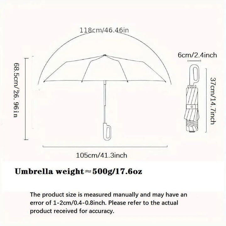 Combining innovative design with robust windproof features, our automatic folding umbrella is perfect for unpredictable weather. From sudden downpours to blazing sunshine, it’s ready to shield you in style whenever you step outside.